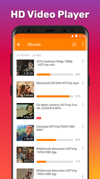Je houdt van films, je bent een filmliefhebber en je wilt genieten van je favoriete films thuis. Als dat het geval is, is HD Video Player voor Android de beste keuze voor jou. Het is een eenvoudig te gebruiken professionele multimediaspeler voor Android telefoons en tablets. Het ondersteunt alle videoformaten, waaronder AVI, MP3, WAV, AAC, MOV, MP4, WMV, RMVB, FLAC, 3GP, M4V, MKV, TS, MPG, FLV, enzovoort.